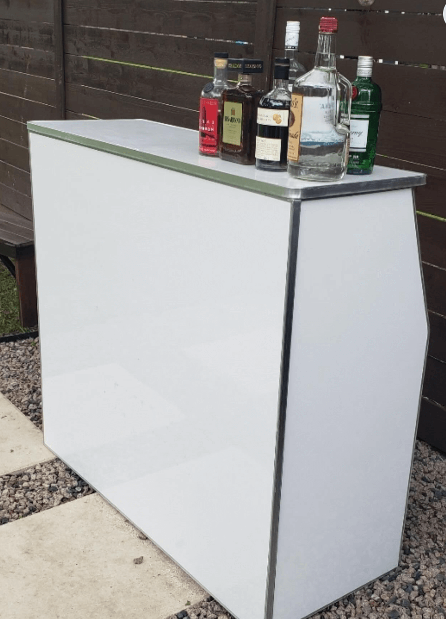 4ft White Folding Portable Bar Rentals in Dallas, TX | Compact Mobile Bar